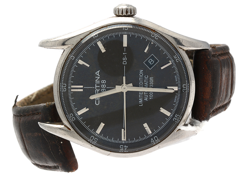 Certina DS-1 Limited Edition herrur, stål med skadat läderband,automatiskt, 40mm, datum, safirglas, med manual, två extra läderband samt stållänk i orginalbox