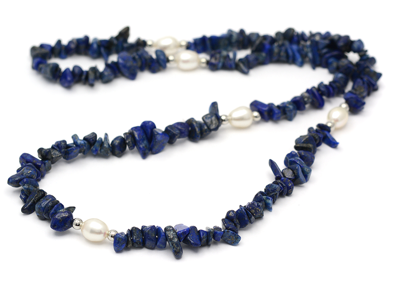 COLLIER, lapis lazuli, ovala odlade sötvattenspärlor, detaljer i vitmetall, längd 66 cm.
