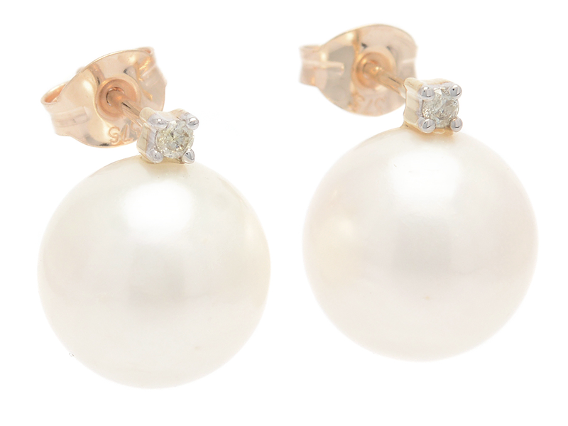 ÖRHÄNGEN, 9K guld, odlade sötvattenspärlor ca 10 mm, 2 briljantslipade diamanter ca 0,04 ctv, ca Cape/P, stift, vikt 3,0 g.