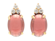 ÖRHÄNGEN, 18K guld med 2 st cabochonslipade granater 2,52 ctv, 6 briljantslipade diamanter ca 0,07 ctv, ca TW/VS-SI, vikt 2,0 g, stift.