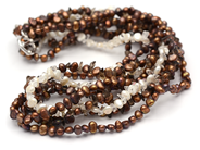 PÄRLCOLLIER, 5-radigt, 4 rader med odlade bruna sötvattenspärlor, en rad med odlade vita sötvattenspärlor, trumlad Bergkristall och Rökkvarts, lås i vitmetall, längd ca 46 cm.