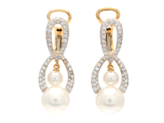PÄRLPÅHÄNG, 18K guld, odlade sötvattenspärlor ca 7,5 mm, 104 briljantslipade diamanter ca 0,30 ctv, ca TW-TCr(G-I)/VS-P, höjd 1,6 cm, vikt 2,2 g, svaga fattningar.