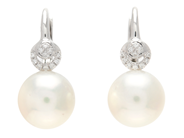 PÄRLPÅHÄNG, 18K vitguld, odlade sötvattenspärlor ca 7,5 mm, 104 briljantslipade diamanter ca 0,30 ctv, ca TW-TCr(G-I)/VS-P, höjd 1,6 cm, vikt 2,1 g, svaga fattningar.