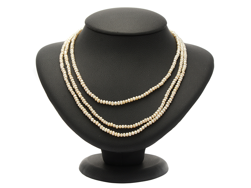 PÄRLCOLLIER, 3 - radigt, sötvattenspärlor, ca 2,75 - 3,5 mm, längd 38 cm.
