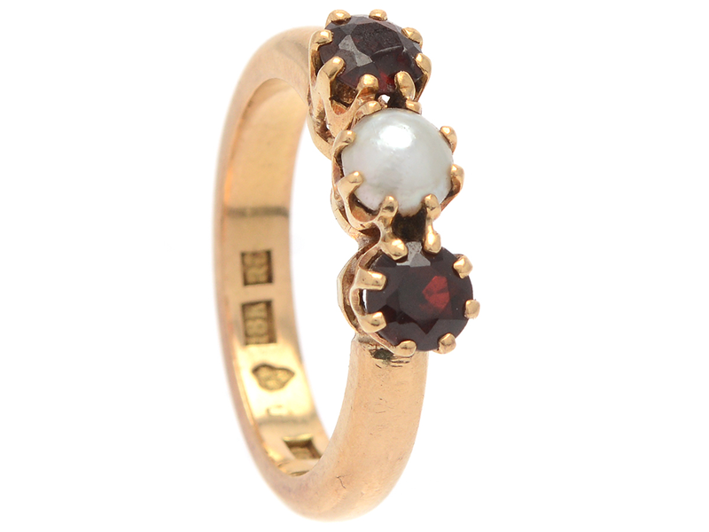 RING, 18K guld, halvpärla, vinrött glas, Stockholm 1943, stl 16,5 mm, vikt 5,7 g.
