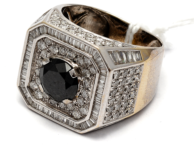 Ring VG 18K 16,1g Ø20, svart diamant ca2,75ct, baguett tot. ca1,40ct, brilljant tot. ca2,06ct