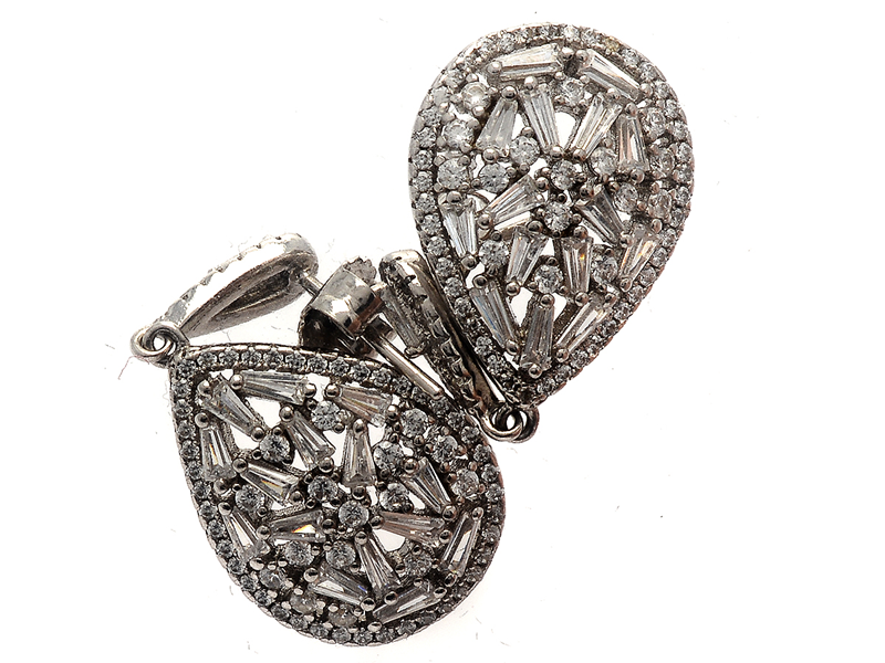Örhängen ett par S925 "Vidal & Vidal" med vita stenar, Längd: 30mm
