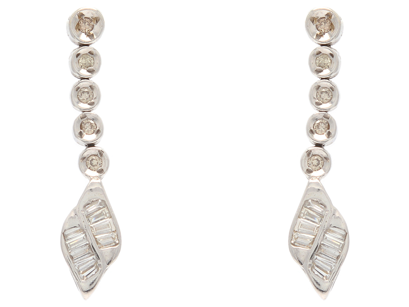 Örhängen ett par 18K 4,4g med diamanter 10xca0,01ct brilliantslipade och 18 baguetteslipade