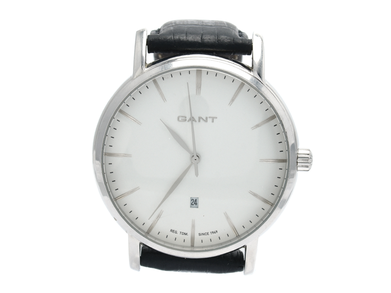 Gant herrur stål Ø40mm med läderarmband quartz modellnr: 7043, liten repa på glas