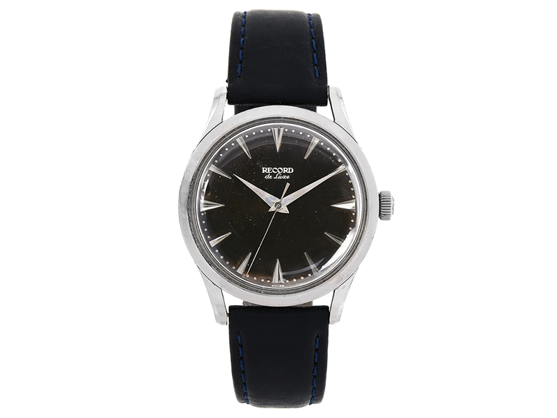 RECORD, de Luxe, "Tropical", Cal 022-18, Boett nr. 6072 / 1183789, herrur, 35,5 mm, stål, manuell, plexiglas, läderband, ca 1958.