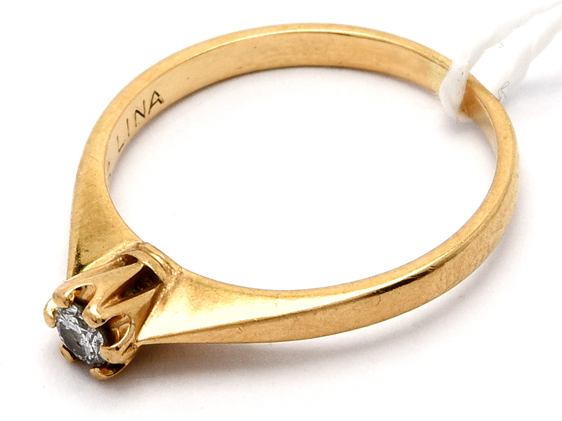 Ring 18K med diamant 1xca0,10ct 2,1g Ø16, graverad