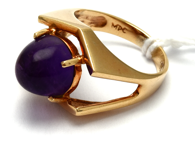 Ring med lila sten 14K 6,0g Ø17
