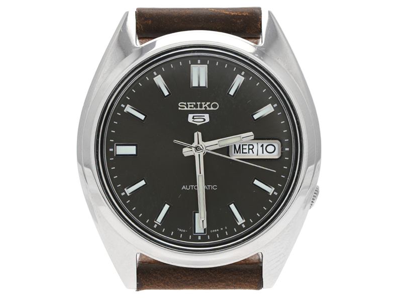 SEIKO, 5, Cal 7S26C, Serie nr. 842056, Ref nr. SNXS79K, Boett nr. 7S26-0480, herrur, 37 mm, stål, automatisk, hardlexglas, dag, datum, glasbaksida, läderband, ca 2018, box, ytterkartong.