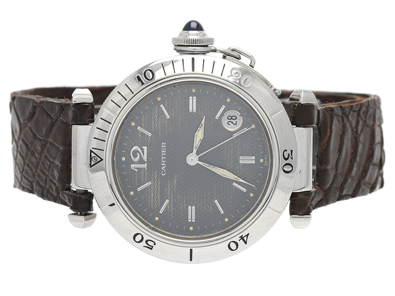 CARTIER, Pasha 38, Cal 049 (ETA 2892A2), Boett nr. 1040 1 / CC44526, herrur, 38 mm, stål, automatisk, safirglas, datum, skadad urtavla, viklås, ca 1999, box (ej komplett).