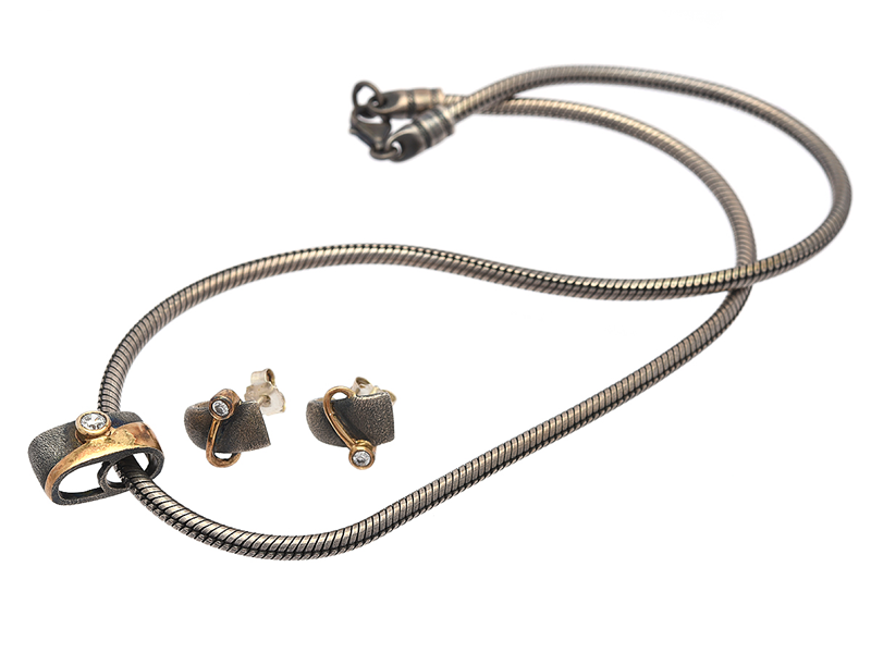 COLLIER OCH ÖRHÄNGEN, sterlingsilver, Rauff, stift, 43 cm.