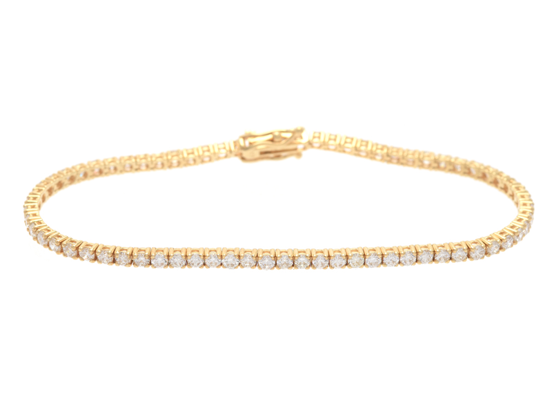 TENNISARMBAND, 18K guld, 71 briljantslipad diamanter ca 3,39 ctv, ca TW-W/VS, längd 17 cm, vikt 7,1 g.