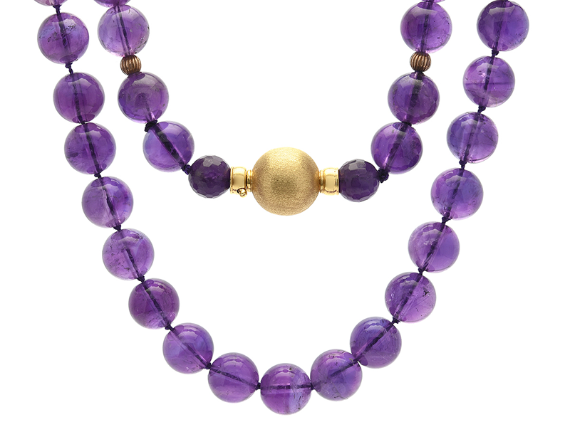 COLLIER, ametistkulor ca 12 mm, lås i 18K guld, längd 44 cm, totalvikt 80,9 g.