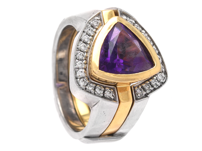 JACKETRING, 18K vitguld/guld, ametist, 22 briljantslipade diamanter ca 0,30 ctv, stl 18,5 mm vikt 22,0 g, ametist med något slitna fasettkanter.