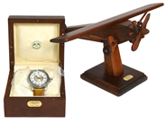 LONGINES, Charles Lindbergh, Replica av "Hour Angle Watch", Cal L876.2 (L878.4), Serie nr. 56616701, Ref nr. 876.5238.4.011, Boett nr. 876.5238, herrur, 47 mm, stål, manuell, safirglas, öppningsbar bakboett med glasad innerboett, läderband, originalspänne, förlängningsband, ca 1987, flygplan i trä, box (skadad) Limiterad och numrerad (Nr. 527/1000).