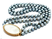 Pärlcollier dubbelradigt, 41,5cm, odlade pärlor Ø6,5-7mm, guldlås och guldinlägg i 18K