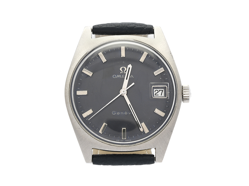 OMEGA, Genève, Cal 613, Serie nr. 30471331, Ref nr. ST 136.0041, Boett nr. 135.041 / 136.041 (C.B), herrur, 34 mm, stål, manuell, plexiglas, datum, skadad urtavla, läderband, ca 1969.