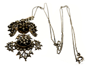 Hänge/brosch (broschnål saknas) med stenar och kedja ca 65cm silver brv 13,3g