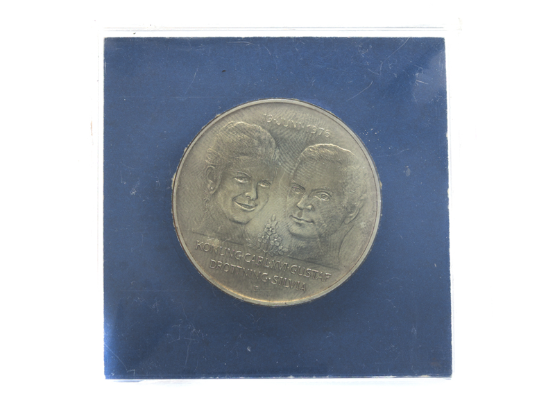 Övrigt Mynt 50kr 1975 Kungen&Drottningen S925 27g dens 10,4 i brutet etui