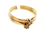 Ring 18K 2,2g Ø16 tvåfärgad med diamanter 2xca0,07ct+1xca0,33ct