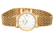 TISSOT 18K datum quartz armband i stål, i behov av batteribyte Ø17cm i etui med manual brv 27,1g