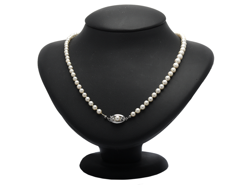 PÄRLCOLLIER, odlade pärlor ca 4 mm, lås i 18K vitguld, längd 52 cm.