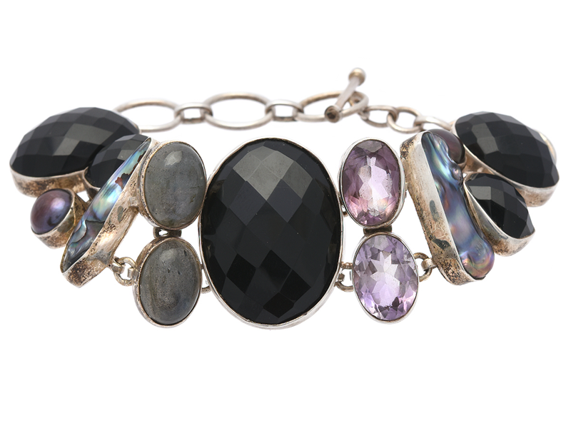 ARMBAND, sterlingsilver, ametist, onyx, labradorit, pärlemor, justerbar längd, vikt 58,2 g.