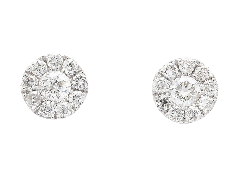 ÖRHÄNGEN, 18K vitguld, 20 briljantslipade diamanter ca 0,15 ctv, ca W-Cr(H-J)/SI-P, diameter 4 mm, vikt 1,0 g, stift, en diamant skadad och några har nagg.