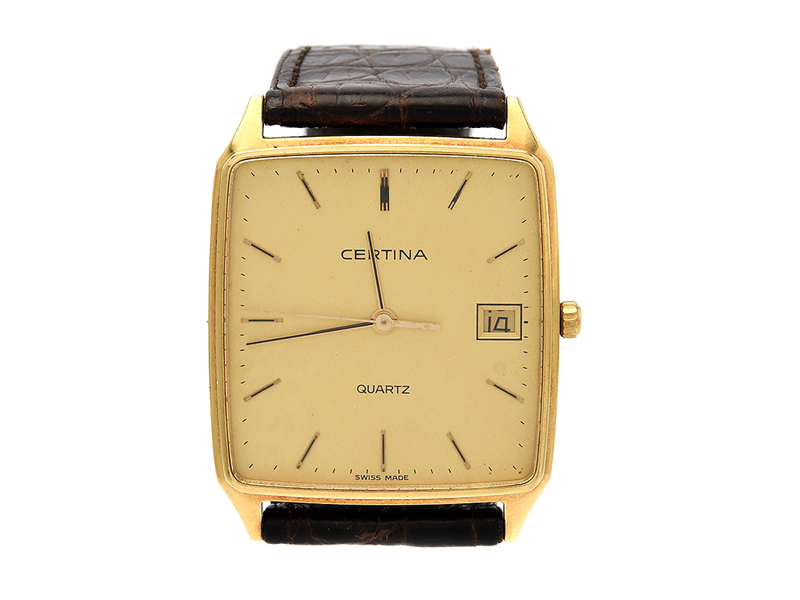 Armbandsur Certina 14K quartz/går ej, datum graverad med läderarmband