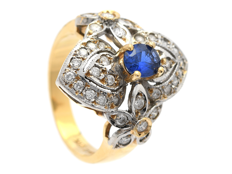 RING, 18K guld, ovalslipad tanzanit, 36 briljantslipade diamanter ca 0,44 ctv, ca W/VS, stl 16,5 mm, vikt 7,2 g.