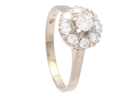 CARMOSÉRING, 18K vitguld, 9 briljantslipade diamanter 0,75 ctv, ca TW/VS, stl 18 mm, vikt 4,1 g, slitna klor.