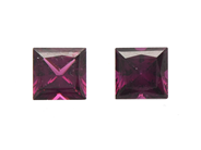 GRANATER, ett par, prinsesslipade, 2,11 ctv, ca 5,5 mm, nagg på kulett och hörn.
