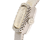 OMEGA, damur, 15 x 18 mm, Cal 484, Serie nr. 28391309, Boett nr. 11009 / 8154, 18K vitguld, manuell, safirglas, formverk, diamanter på boetten (28 st. 8/8), gravyr, integrerad originallänk, längd 170-174 mm, totalvikt 35,5 gram, ca 1969.