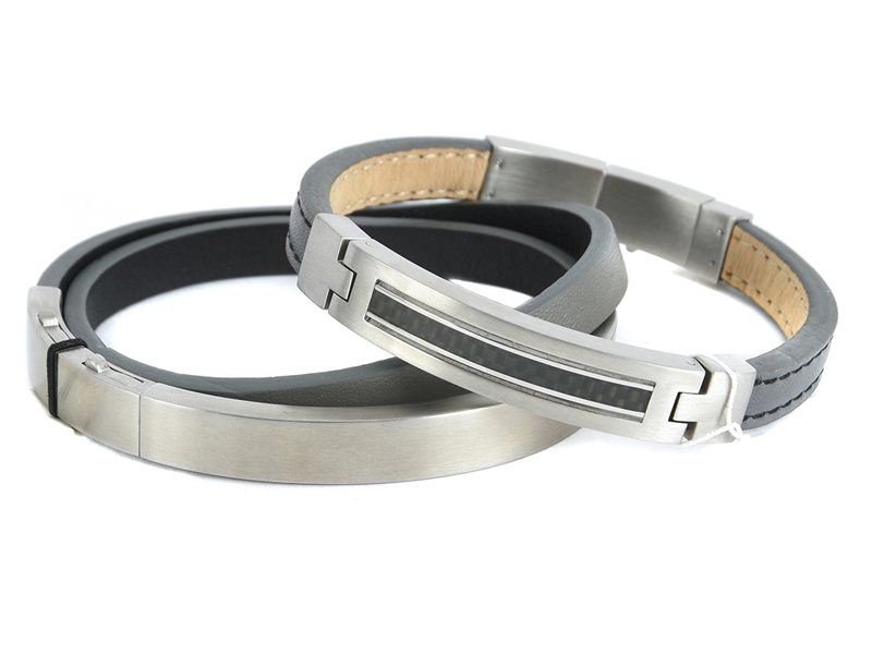 ARMBAND, SKAGEN, 2st grått läder, stål, öppningsbara, ca 7cm i diameter, går att reglera.
