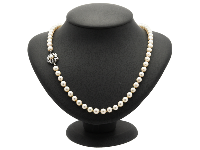 PÄRLCOLLIER, odlade pärlor, lås i silver, pärlor ca 6,3 mm, längd 62 cm.