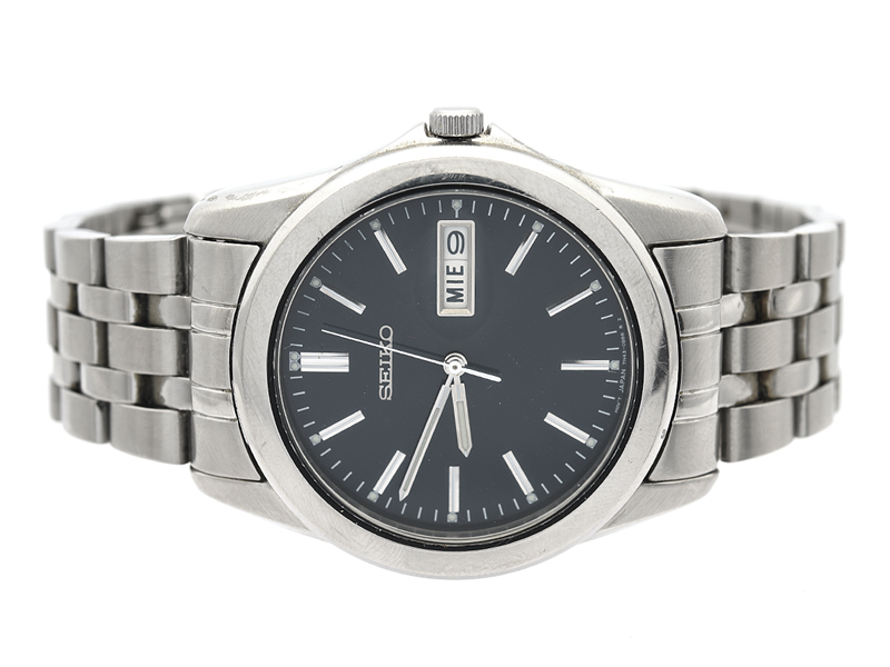 Seiko, stål, quartz, snr. 701611, datum, 36mm med stållänk och repigt lås