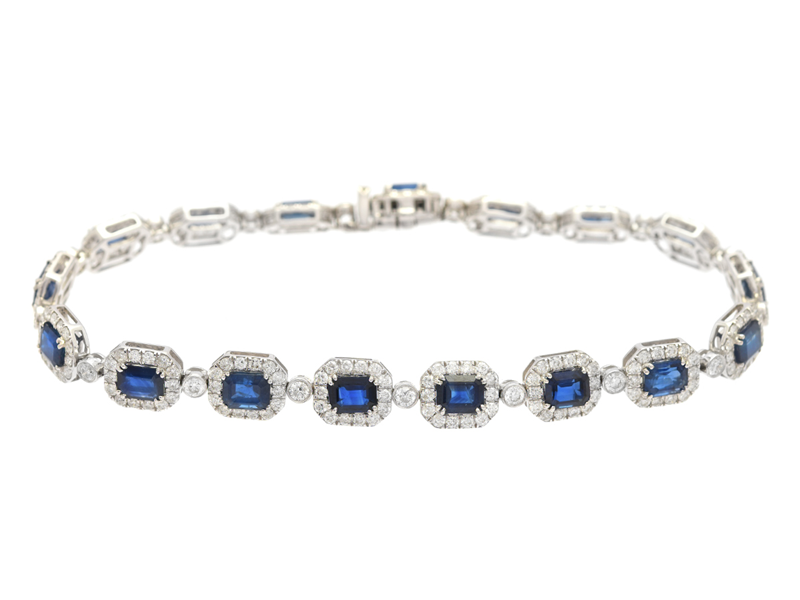 ARMBAND, 18K vitguld, safirer ca 8,73 ctv, briljantslipade diamanter ca 3,10 ctv, ca TW-Cr/P, längd 19 cm, vikt 14,8 g.