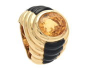 CARMOSÉRING, 14K guld, ovalslipad citrin, 32 briljantslipade diamanter ca 0,32 ctv, stl 16,5 mm, vikt 6,4 g.