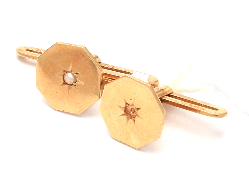Kragknappar 18K 2,6g med liten pärla, defekta en saknar pärla