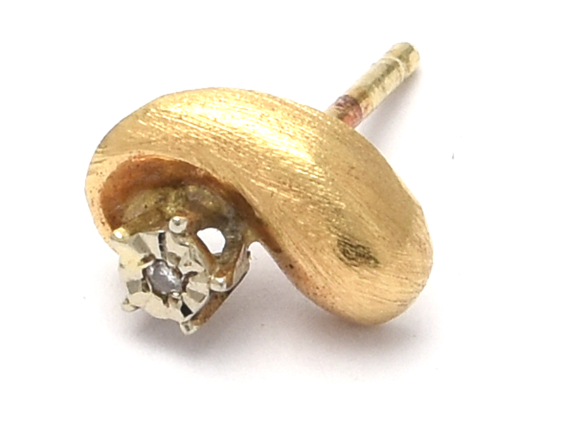 Örhänge ett udda 14K 0,6g med sten, saknas stopper