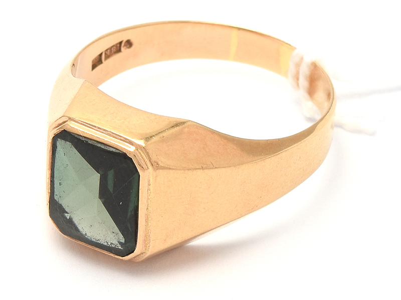 Klackring, 18K 7,8g med grön sten Ø 23 1/2