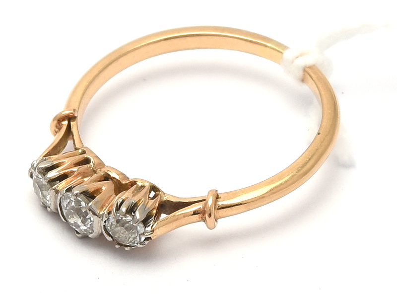 Ring, 18K 2,3g med diamanter äldre slipning 2x ca 0,10ct 1x ca 0,16ct Ø17