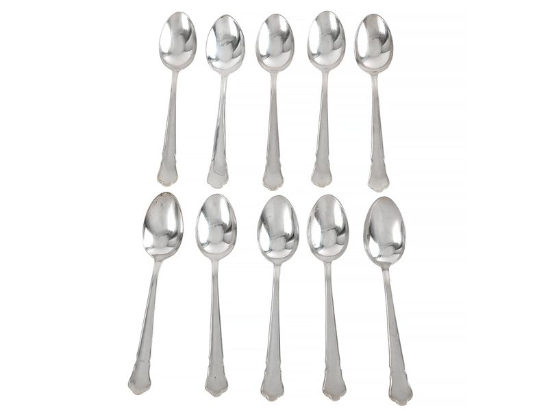 KAFFESKEDAR, silver, 10 st, modell Chippendale, GAB, Stockholm 1960-1962, totalvikt 135,9 g, i linda.