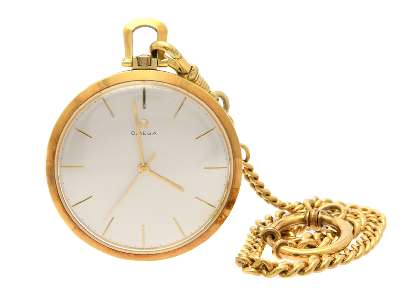 OMEGA, frackur, 44 mm, Cal 601, Serie nr. 23672963, Boett nr. 1706, doublé (20 micron), ankargång, mönster, ca 1966, kedja i gulmetall.