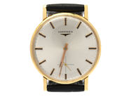 LONGINES, herrur, 34,5 mm, Cal 30L, Serie nr. 14237336, Boett nr. 7515 13 / 486, 18K guld, manuell, plexiglas, liten sekundvisare, saknar krona/ställaxle, gravyr, läderband, ca 1968.
