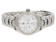 TAG HEUER, Link (200 Meters), Serie nr. RBY0786, Ref nr. CJF1312.BA0580, Boett nr. CJF1312, kronograf, damur, 33 mm, stål, quartz, safirglas (nagg), datum, pärlemorurtavla med diamanter (12 st. TW/VVS-IF, CA 0,91 ctv), integrerad originallänk, viklås, Ref nr. FAA017-Y-L6/3098 Y, cert, augusti 2010, box, ytterkartong.